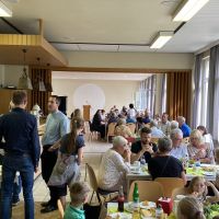 In seiner Predigt beschrieb Volkmar seinen Dienst als fortgesetzte Einladung Gottes. „Der große Gott will mit uns armseligen Gestalten Gemeinschaft haben – will, dass wir bei Ihm zu Hause sind, an Seinem Tisch sitzen und uns laben an den Gaben, die wirklich satt machen, weil sie die Ewigkeit in sich tragen. Überlegt mal, was das heißt! Das wäre ja der Himmel – das Paradies, wie am Anfang,“ so Volkmar.