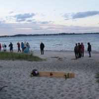Nach einem leckeren Mittagessen war es freigestellt, entweder mit dem Bus einen Ausflug nach Schleswig zum Wikinger-Museum Haithabu zu machen, Eckernförde kennen zu lernen oder über den weißen, feinsandigen Ostseestrand zu laufen. Am Abend trafen sich dann alle wieder zu einer zünftigen Grillparty mit KUBB-Turnier am Südstrand. Den Abschluss des Tages bildete bei Sonnenuntergang die Abendandacht an der Grillhütte.
