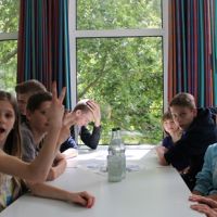 Am nächsten Morgen ging es in die Landeshauptstadt Kiel. Auch hier konnten wir uns entscheiden, entweder mit dem „Wassertaxi“ nach Laboe zu schippern oder lieber die Sehenswürdigkeiten der Stadt zu besuchen. Da gerade an diesem Wochenende die bekannte „Kieler Woche“ begann, fanden sich auf der Hafenmeile viele Möglichkeiten, den Nachmittag zu gestalten, bevor die Rückreise nach Eckernförde angetreten werden musste. Denn ein besonderes „High-Light“ stand noch bevor: das WM-Spiel der deutschen Elf gegen Ghana, das wir zusammen mit andern Gästen der JH auf Großleinwand verfolgen konnten.