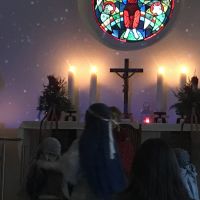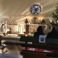Die Kinder haben uns die Geschichte von Jesu Geburt auch dieses Jahr wieder im Krippenspiel anschaulich vor Augen geführt. Bevor unser Pastor die Predigt halten konnte, musste erst die Kulisse des Wirtshauses 'Zum heiligen Ochsen' vor der Kanzel entfernt werden.