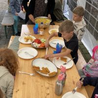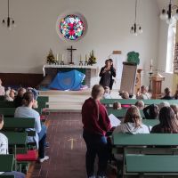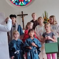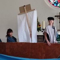 Mit 19 Kindern konnten wir am Samstag den 27.08. wieder, GOTT sei Dank, unser Kinderbibelcamp in Talle starten. Dank vieler, fleißiger Helfer gab es wieder Spiele, Basteleinheiten, Schnitzeljagd, Andacht , jede Menge zu Essen und ein Rollenspiel welches am Sonntag im Gottesdienst von den Kindern aufgeführt wurde. Alles stand unter dem Thema Jona, dem Propheten der sich zunächst weigerte Gottes Strafgericht dem Volk von Ninive zu verkündigen und meinte er könnte sich vor ihm verstecken. Den der allmächtige Gott dann aber doch, durch die „innige“ Begegnung mit einem großen Fisch, davon überzeugte seine Botschaft zu übermitteln. „Weißt du nicht, dass Gottes Güte dich zur Umkehr treibt?“, das ist nur eins der Lieder, der Kinder, die uns bestimmt noch länger im Ohr bleiben :-)
