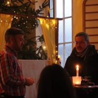 Die beiden Freunde, Johannes und Helge, treffen sich auf dem Weihnachtsmarkt. Bei Glühwein reden sie über Gott und die Welt. Johannes klagt angesichts der aktuellen Geschehnisse in der Welt sein Leid, nicht in Weihnachtstimmung zu sein. Kann man trotz der vielen schrecklichen Nachrichten von Krieg und Terror überhaupt in Weihnachtsstimmung kommen? Oder braucht es dazu die Empfehlung der Wirtin „Kippt euch mal zwei Glühwein rein, dann kehrt ganz bald der Friede ein“? Angesichts dieser Frage fühlt sich Helge, der ein bekennender Christ ist, fröhlich herausgefordert, seinem Freund die heilsame Botschaft nahezubringen, dass die wahre Weihnachtsstimmung genauso unabhängig von weltlichen Dingen ist, wie der wahre Frieden, weil dieser sich einzig und allein auf Jesus Christus gründet. Um diesen befreienden Glauben beneidet Johannes seinen Freund und er erklärt sich augenzwinkernd bereit, irgendwann mal mit zur Kirche zu kommen. Das lässt sich Helge nicht zweimal sagen und lädt seinen Freund sogleich zur Quelle der guten Botschaft ein. Bereit für wahre Weihnachtsstimmung? Johannes und Helge setzen sich in die Kirchenbank und verfolgen die über 2000 Jahre alte Weihnachtsgeschichte, die zahlreiche Kinder nun zum Leben erwecken. Ein Highlight ist, als der Engel singt und die Gemeinde überraschend mit ins Gloria einstimmt. So wird die Gemeinde unbewusst mit zum Botschafter der biblischen Überlieferung, die da heißt: „Plötzlich war der Engel umgeben vom ganzen himmlischen Heer der Engel.“ Lukas 2,13. - ein magischer Moment - „Gloria in excelsis deo“ - Ehre sei Gott in der Höhe -, das gilt unserem Herrn, der sich vor 2000 Jahren für uns geopfert hatte und so für wahren, ewigen Frieden sorgt. Jesus Christus spricht: „Dies habe ich mit euch geredet, damit ihr in mir Frieden habt. In der Welt habt ihr Angst; aber seid getrost, ich habe die Welt überwunden.“ Deshalb suchen wir den Frieden und jagen IHM ( Jesus Christus ) nach! (CA)