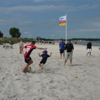 Nach der Rückkehr in die Jugendherberge war der Strand vor der Haustür für viele wieder ein "Muss", obwohl ein starker Seewind ihnen den feinen Sand ins Gesicht blies. Nach dem Abendessen fanden sich alle in einem Gruppenraum zu einer Bibelarbeit mit dem Thema ' Angst in stürmischen Zeiten ' ein.