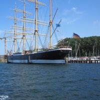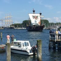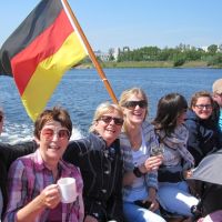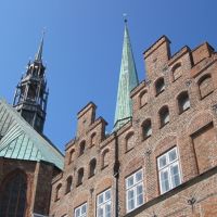 Am nächsten Tag und bei strahlendem Sonnenschein stand Lübeck mit seinen vielen Sehenswürdigkeiten auf dem Programm. Außerdem eine Schifffahrt auf der Trave bis Travemünde, vorbei am Segelschulschiff 'Passat' mit Rückblick auf das Stadtpanorama von Lübeck mit seinen vielen Kirchtürmen.
