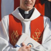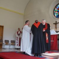 Nach den biblischen Voten der einzelnen Pastoren legte er dem Vikar die rote Stola mit den Worten Christi um: "Mein Joch ist sanft, meine Last ist leicht".