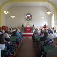 Fast 200 Gottesdienstbesucher aus nah und fern fanden im Kirchenschiff, Vorraum und sogar im Gemeinderaum mit Video-Übertragung Platz.