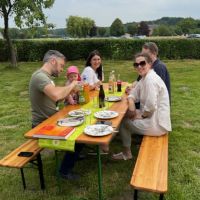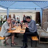 Im Anschluss war auch für das leibliche Wohl bestens gesorgt. Die Gäste, die sich bei gutem Wetter auf die Deele und die dazugehörigen Grünanlagen verteilten, ließen sich die Bratwürstchen und die vielen mitgebrachten Salate schmecken. Das Nachmittagsprogramm übernahm Pastor Volkmar, der ein humoriges Quiz vorbereitet hatte, in dem es sowohl um die Bibel als auch um die beteiligten Gemeinden ging. Anschließend ließ sich bei Kaffee und Kuchen noch lange verweilen. Alles in allem war es ein gelungener Tag, der den Zusammenhalt unter den Gemeinden gestärkt haben dürfte. Dank gebührt besonders Familie Kipp – aber natürlich auch allen, die an Planung, Organisation und Verköstigung beteiligt waren. Vergelt‘s Gott! (TCH)