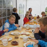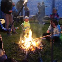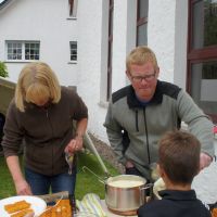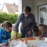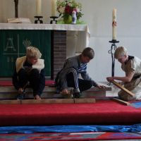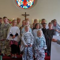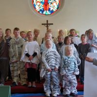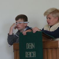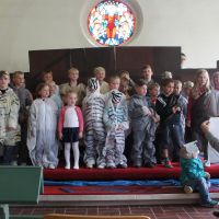 30 Kinder sind für unser Kinder-Bibel-Camp eigentlich „Ende der Fahnenstange“, wenig Platz, nur eine Toilette, kleine Küche... Am Ende waren es 33 Kinder plus Helfer – so viele wie noch nie. Gott sei Dank hielt das Wetter, so dass wir viel draußen machen konnten und die Beengtheit unserer Gemeinderäume kein wirkliches Problem war. Nur die Fischstäbchen wurden knapp ;) Ansonsten lief das Camp wieder super rund: Für das Thema „Noah und die Arche“ wurde ein Rollenspiel und Lieder eingeübt, Kulisse, Tierkostüme und Regenmacher gebastelt. Dazu gab’s die obligatorische Ralley, das Lagerfeuer und die Nachwanderung, bevor sich alle in ihren Schlafsack kuschelten. Geschlafen wurde auch, aber nur wenig, weil in Talle gleich 5 Hähne des morgens um die Wette krähen. Dennoch waren alle fit und fröhlich genug, im Familiengottesdienst die Geschichte von Noah durch Spiel und Gesang zu verkündigen. Über 160 Leute waren „in die Arche“ gekommen und saßen dicht gedrängt beieinander wie damals in Noahs Kasten – rekordverdächtig: So viele Leute waren zuvor nur selten in unserer kleinen Kirche im Gottesdienst gezählt worden. Und nicht nur, dass es dann auch von oben ein wenig nass wurde, als die Sintflut einsetzte, – für einen kleinen „Leichtmatrosen“ wurde es an diesem denkwürdigen Sonntag richtig nass, als er durch das Wasser der Heiligen Taufe hindurch gerettet und Teil der Mannschaft wurde, die im Schiff der Kirche Richtung ewiges Leben unterwegs ist. So konnten wir hautnah sehen und miterleben, wie Gott uns zu sich zieht und bewahrt. Die Noah-Geschichte ist eben nicht „von gestern“. Der Regenbogen, den wir morgens noch mit Beamer in die Kirche projiziert hatten, strahlte am Abend dieses Sonntags übrigens live und in Farbe über Talle. Gott meint es gut!