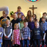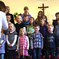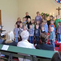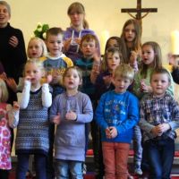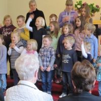 Über 20 Kinder bereicherten außerdem den Gottesdienst mit 2 eingeübten Stücken, die sie voller Begeisterung vor der Gemeinde präsentierten. Die Predigt zum Thema “Das Alte ist vergangen, siehe, Neues ist geworden.” (2.Kor.5,17) unterlegte Pastor Volkmar anschaulich mit einer Bildprojektion, bei der besonders die Kinder einbezogen wurden.