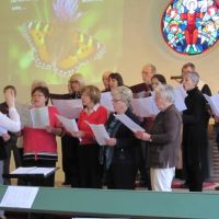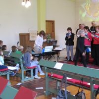Und bei uns ging es nicht um diese Wurst, sondern darum, Gottes Wort auf singende, fröhliche Weise zu verkünden. Das taten Glieder – Junge und Alte – aus unseren beiden Gemeinden am Sonntag Jubilate. In einer fast voll besetzten Kirche erlebten Gemeinde und Chor unter der Leitung von Kantorin Susanne Quellmalz einen besonderen Singe-Sonntagmorgen mit vielen neuen Liedern aus dem „blauen“ Cosi. Nach nur wenigen Übungsstunden trug ein 18-köpfiger Projektchor zwar mit leichten anfänglichen Sprachschwierigkeiten sogar englischsprachige Stücke wie „Christ is risen from the death“ und „Shine, Jesus, shine“ vor.