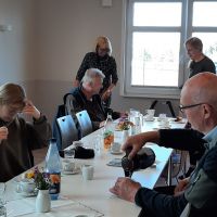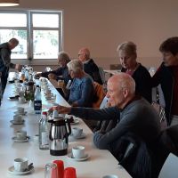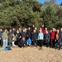 Am 13.10.24, am frühen Sonntag morgen, sind wir mit 30 Teilnehmern im großen Reisebus in den Sonnenaufgang Richtung Autobahn gestartet. Trotz kurzem Zwischenstopp im Allertal kamen wir rechtzeitig in Sottrum an. Wir wurden herzlich begrüßt und mit frischem Kaffee versorgt. Dann folgte das Highlight des Tages: der Abendmahls-Gottesdienst in der tollen, großen und neuen Kirche. Alles beeindruckend und doch so vertraut durch unseren ehemaligen Pastor Ulli Volkmar, begleitet durch einen starken Posaunenchor und Orgel. Wirklich schön! Zum anschließenden Mittagessen wurden wir bestens bewirtet. Danach startete ein kleiner Ausflug zur wenige Kilometer entfernten Sottrumer Sehenswürdigkeit, der Düne. Dort konnte man sich ein wenig die Beine vertreten. Wieder zurück wurden wir erneut mit Kaffee und Kuchen verwöhnt und es gab noch Möglichkeiten zum Plaudern mit den Sottrumern. Alles in allem ein schönes Wiedersehen! Mit herzlicher Verabschiedung und vielen Eindrücken traten wir die Heimreise an. Dankeschön an Ulli und Kornelia und die Gemeinde in Sottrum für die Einladung, Bewirtung und Gespräche, an Sandra, Elisabeth und Manfred für die gute Organisation im Vorfeld und an Werner, unseren netten Busfahrer, der uns sicher hin- und zurückgefahren hatte!